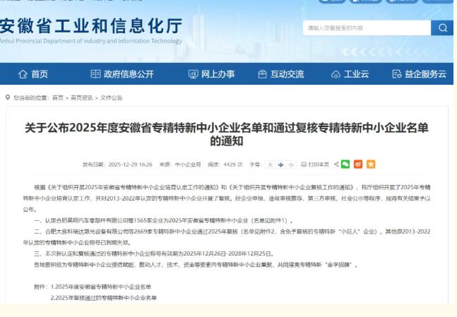 三家單位實力入選2025年安徽省“專精特新”中小企業!